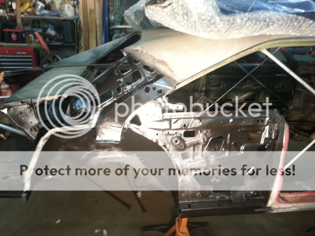 Now I am getting closer to paint and plan on having it ready to drive on my wedding day in September. I still have a long way to go but am excited to get there finally. So far it has been 6.5 years and I have had to do a lot to get her here (floors, 1 frame rail, full quarters, all rear bracing, valence, dutchman, rockers, subframe connectors, torque boxes, torsion bar crossmember, and repair pretty much everywhere else).