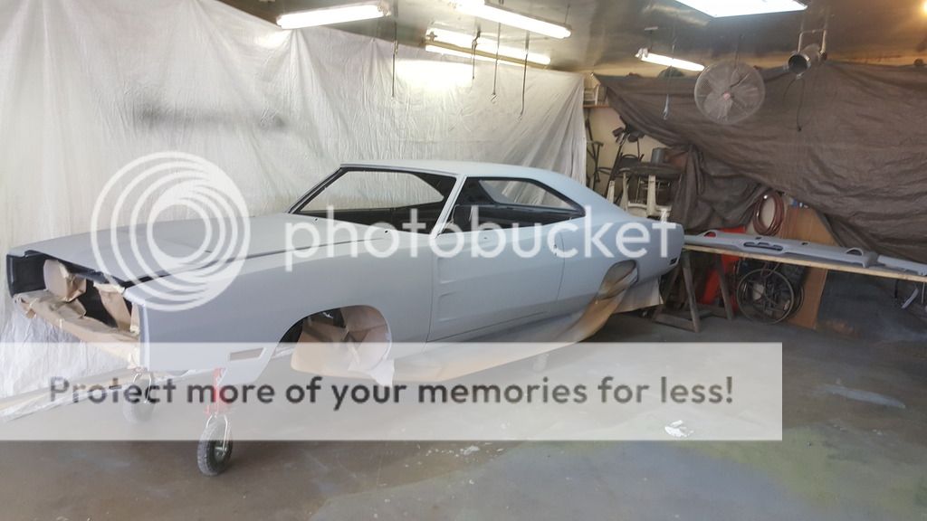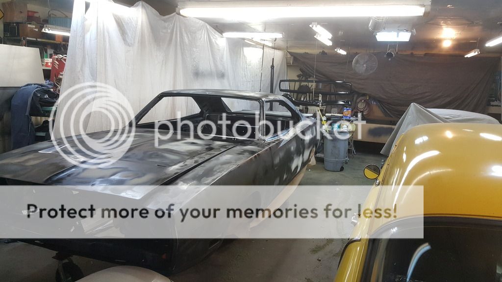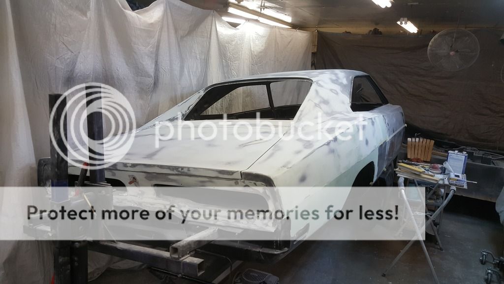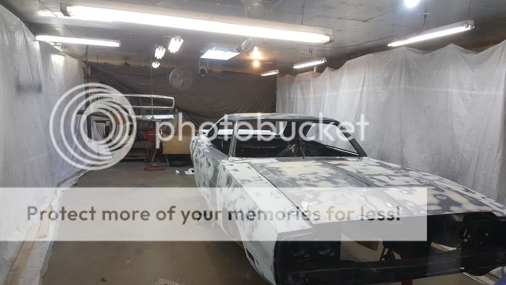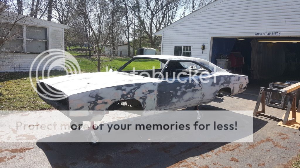 I rolled my Charger outside to blow her off really well and the proceeded to shoot some more primer on her. I had to touch up some areas with epoxy where I had broken through and then shot the high build. I have to admit, I am very happy with how straight she is and can't wait to start blocking her to see what all is left before paint.