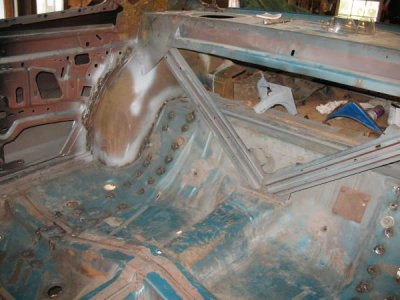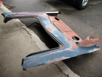 Here are some more shots of the car as I bought it, through the dissmantle process, some shots of the doner metal I bought off ebay out of NM and some post doner metal installation. I have since bought another 1/3rd of a `68 coronet to get some of the other parts for the car that are not currently being repoped yet. I'll tell you what, buying used oem is the way to go, I have saved over $2K over the cost of new parts just in the underbody and that is before selling off all of the extra stuff I don't need that came with the parts I bought. If the economy turns around the cost might all but cancle out and the car will end up being 85% oem and that is not bad considering what I started with.