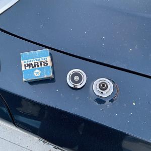 Anyways I ordered up some new aftermarket MoPar style strikers and to my surprise (as seen in second photo) were way to big-- after researching it seemed the GM style striker was the closest to what was on our Cordoba.