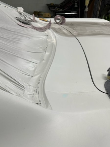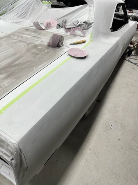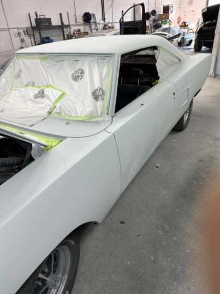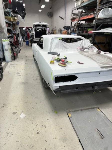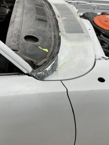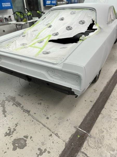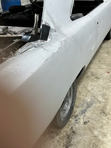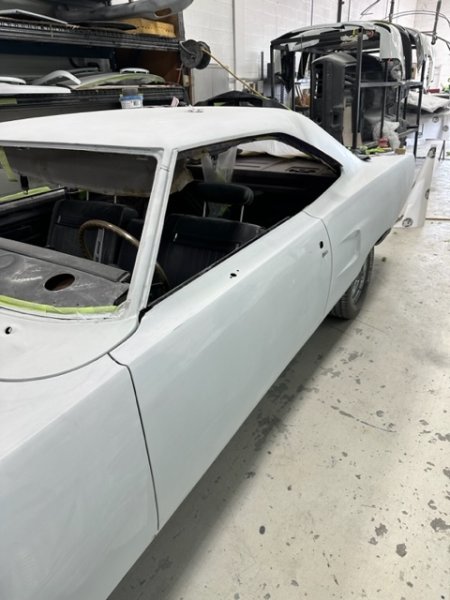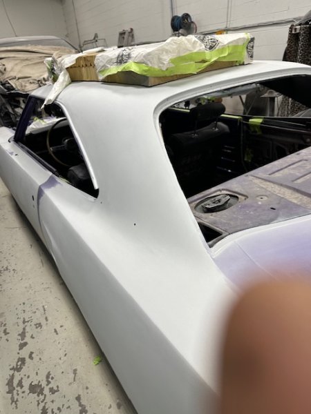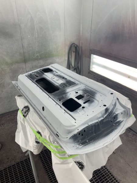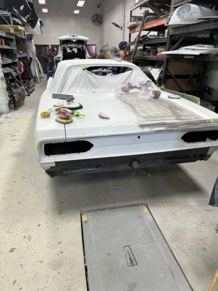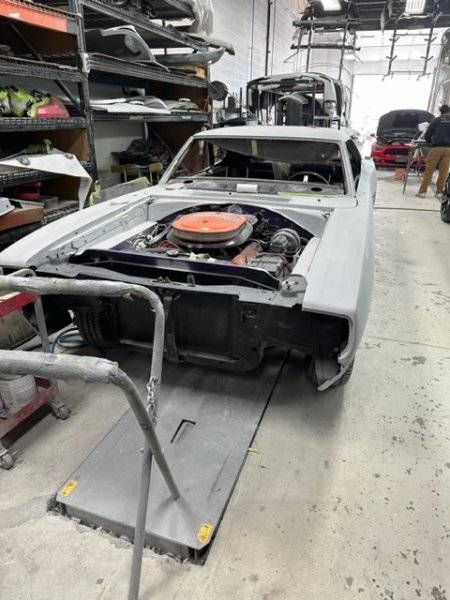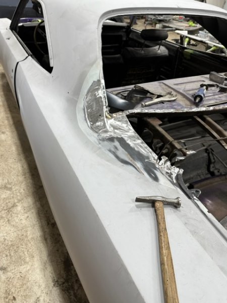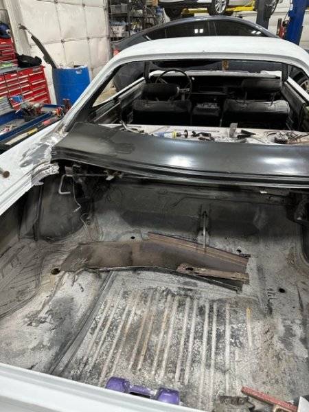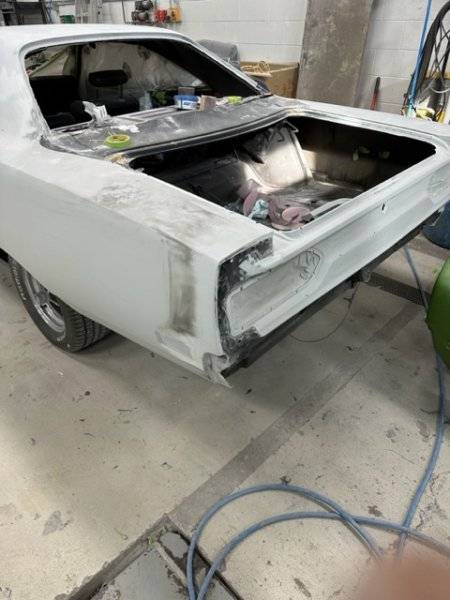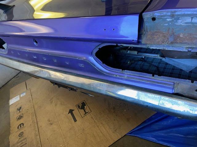 Start of the journey. Car was in a building that had a fire. no serious damage to the car & no warped panels. Stripped down to steel, repaired & window out repaint.