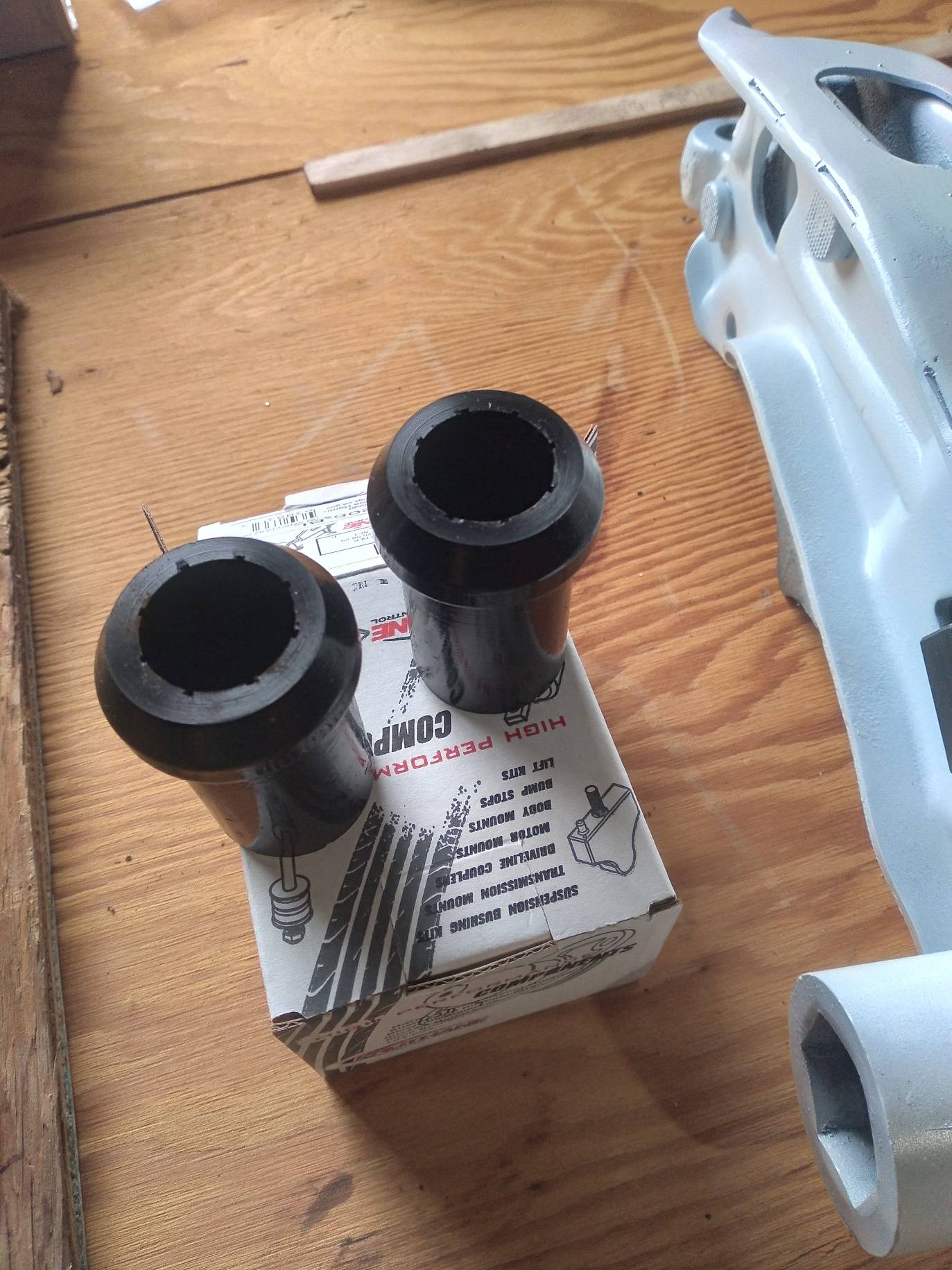 The steel sleeves in the control arms needed a lot of sanding to get the poly to fit.