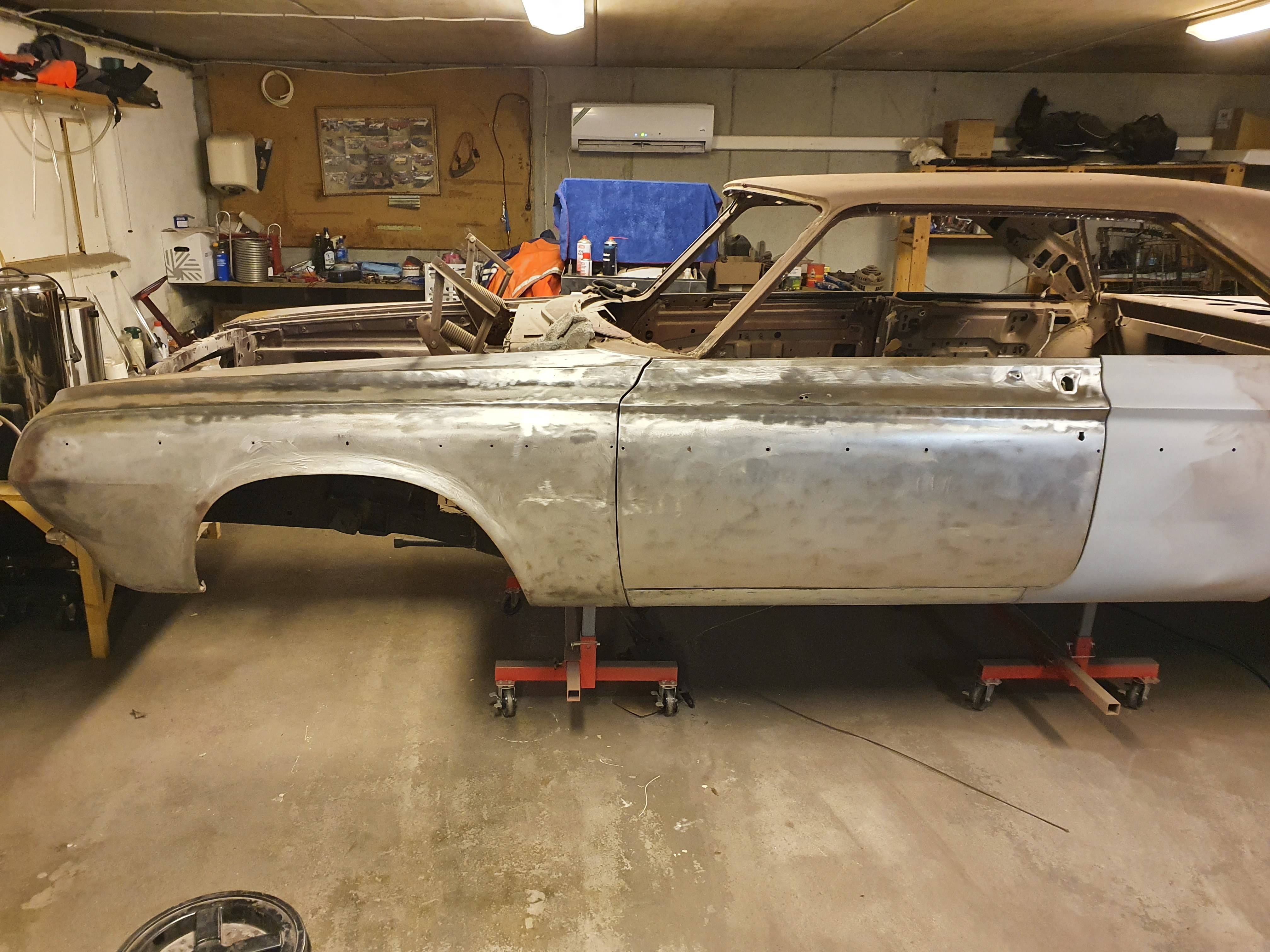 Imported from Usa to Norway, now ready to paint. Have new interior from Legendary ready, and a lot of other new parts to be put on. Original 383, ps, pb and.Been a slow process but now getting ready to paint in Chestnut Brown.