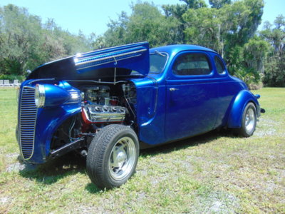 This car is powered with a 1954 Hemi with 56 heads- 337 cu inches--completed rebuild less than 50 miles ago- forged pistons with gapless rings-mild cam with variable duration lifters--2-500cfm Edelbrock carbs with progressive linkage--automatic trans--8-3/4 rear --mustang II front end with rack & pinion & manual steering & disc brakes--paint is about 8 years old & could use a fresh paint job but draws a crowd every place I drive it--Interior is old style crush valor & has electric windows. I am selling this for a friend due to health issues he has .I'll be glad to answer questions about this fun car. Hes asking $40 K obo and this car can be driven anywhere.