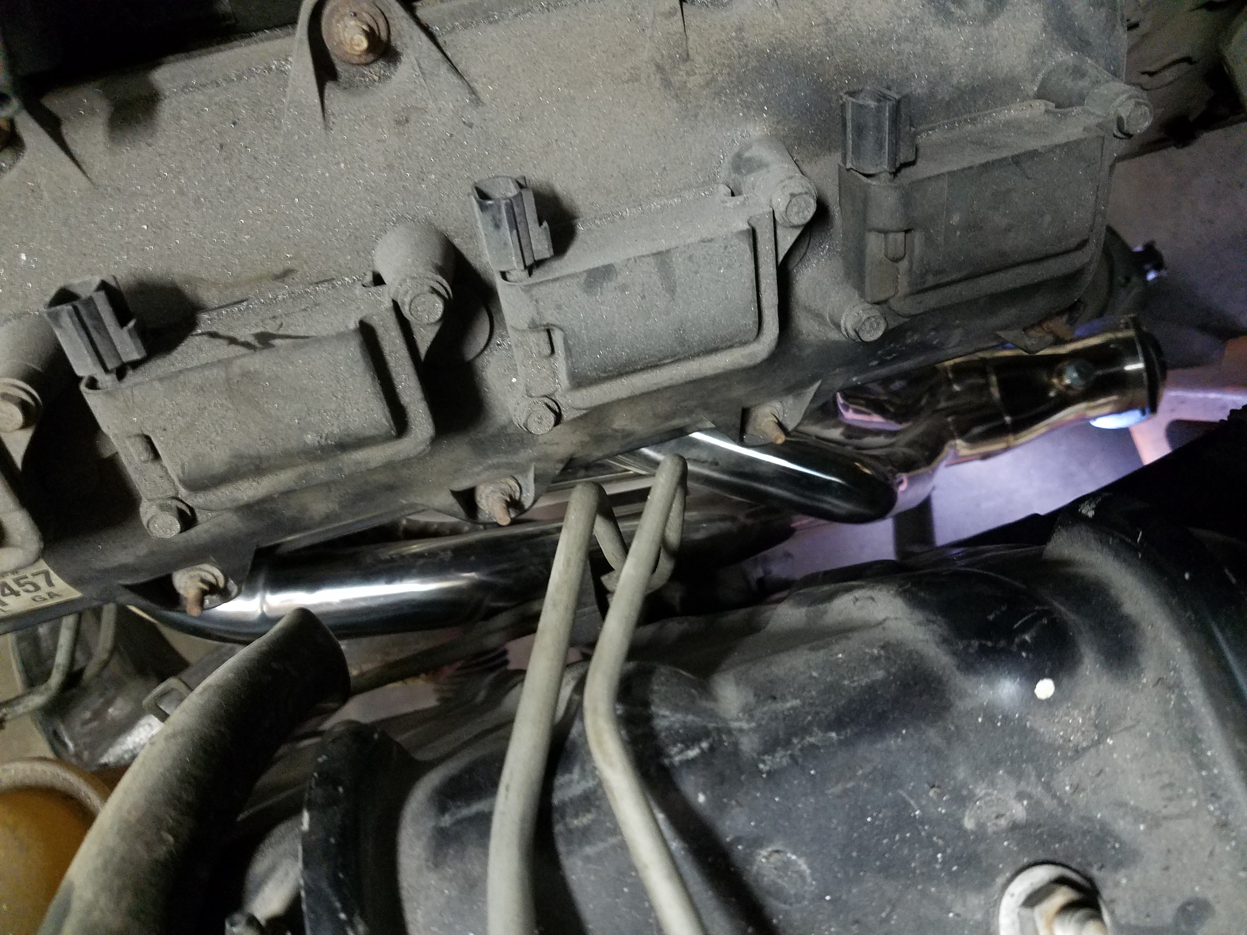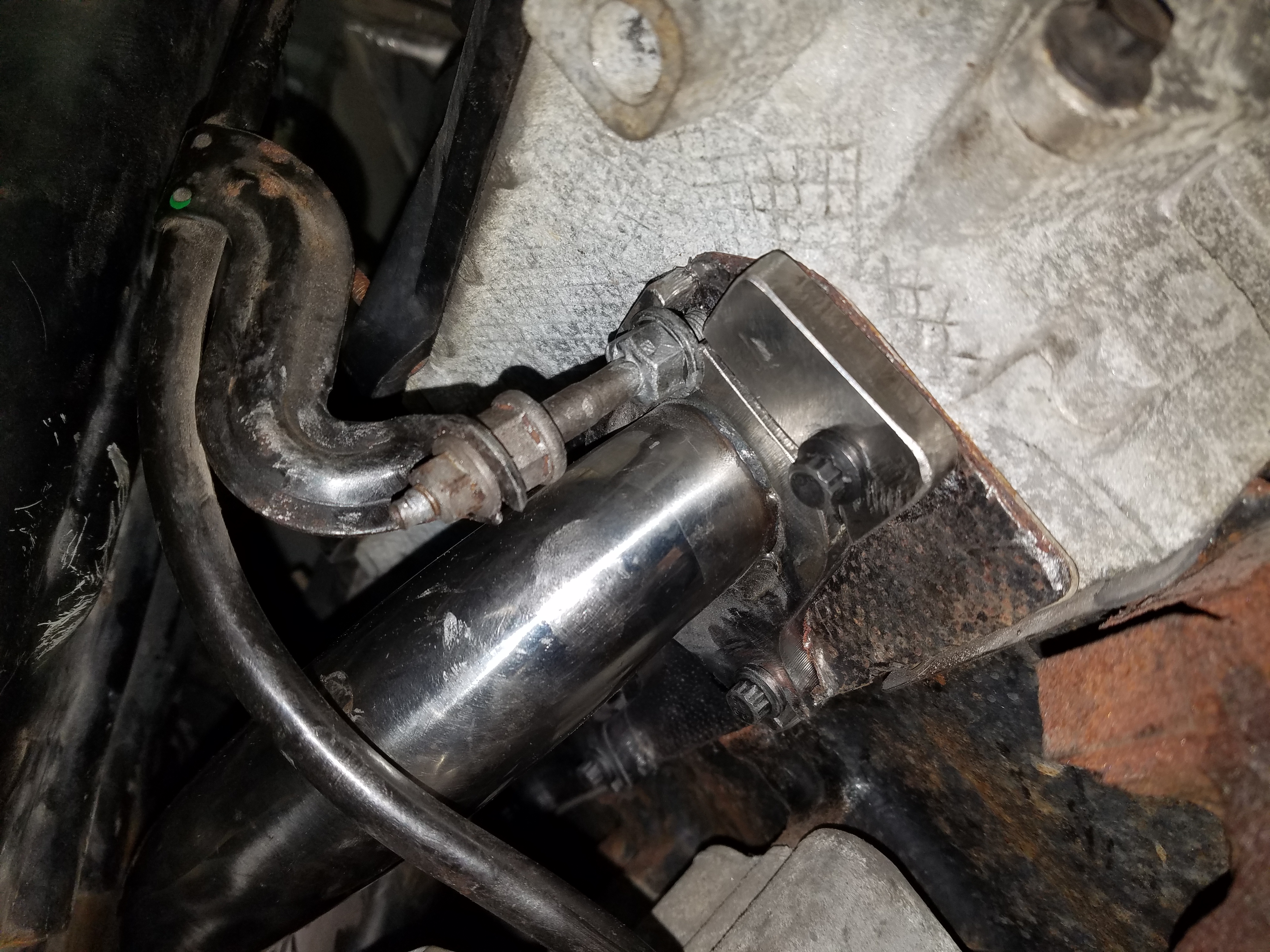 Oil dipstick mount (the silver is anti-seize)