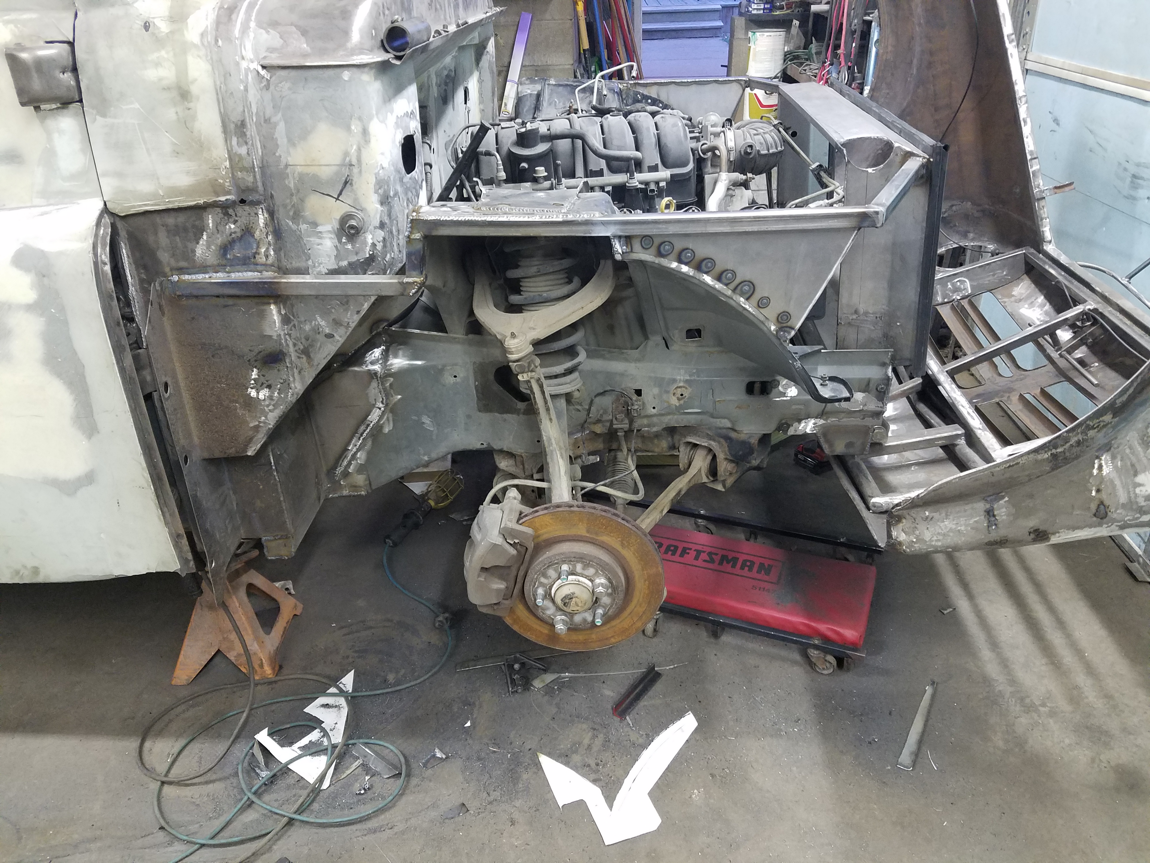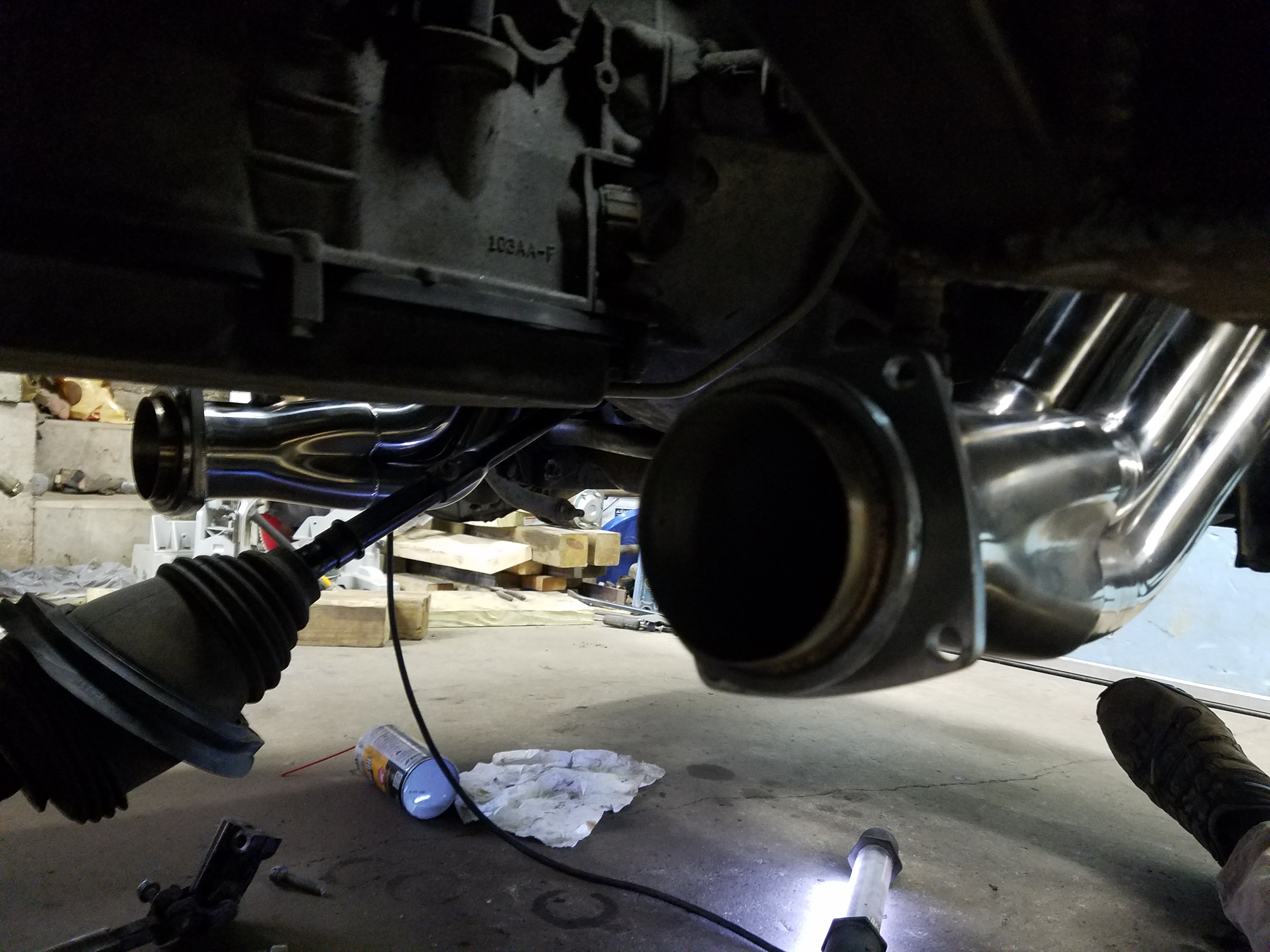 Updates... Steering column is in. Headers are on. EGR is bypassed (on the header side of the head). Oil dipstick tube is re-mounted.