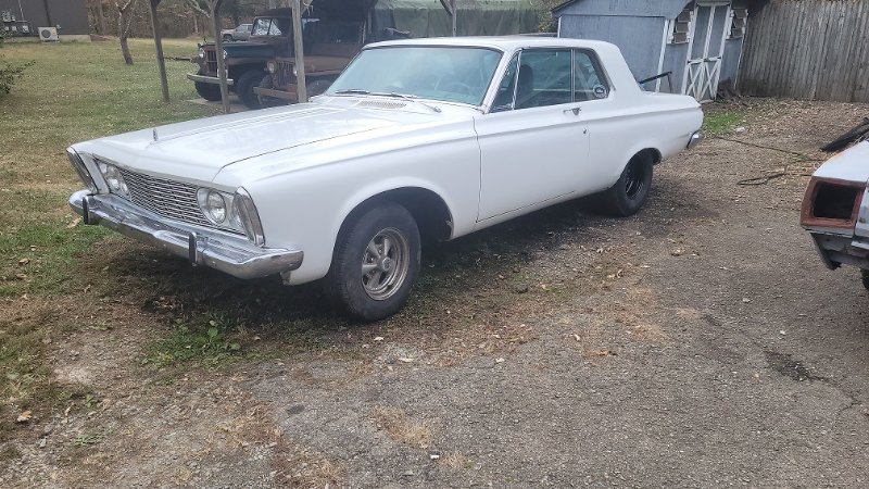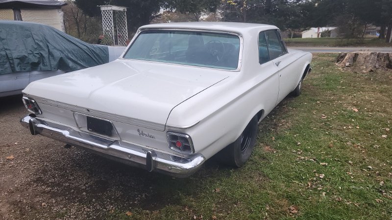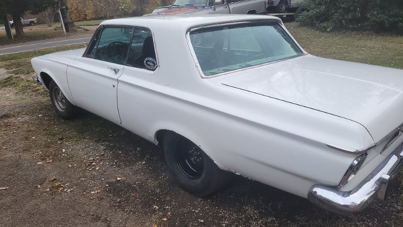 1963 Belvedere 2dr. hdtp. 6 cyl., auto. It runs, yard drives, no brakes. It has the original floors which aren't bad, trunk floor has some soft spots. Car has been tubbed and includes a S&W (I believe 8 point) roll bar and spring relocation kit. V8 K-frame included.