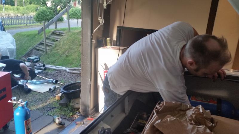 Garage time with kjalltrac and his retard a-body brother(65signetsweden on fabo). Drinking beer and some moonshine and building 3" exhaust.