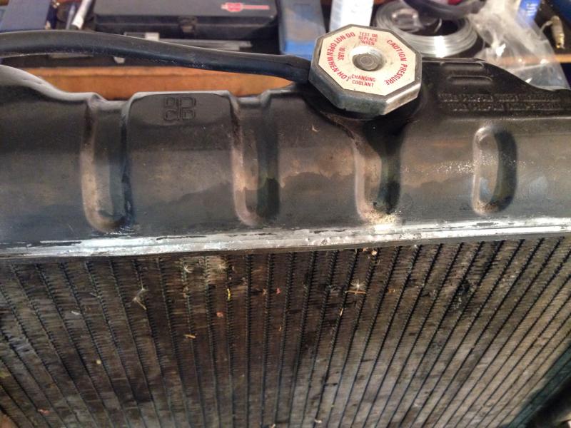 Discovered a 4 inch crack in the top tank of the radiator, took 3 hours to get the radiator out of the car, solder and install it in the car.