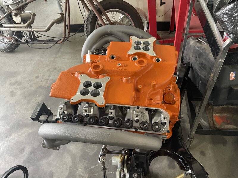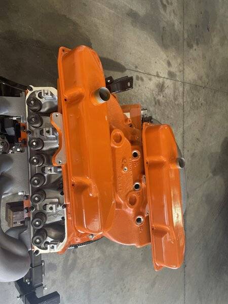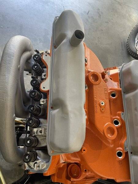 Picked up a pair of 6 bolt max wedge valve covers from a 64 from a nice guy in San Diego. Had the the push on oil cap breather but missing the smaller one with the pcv valve. Also they where race hemi orange but had ramcharger 426 decals so I sent them out to be stripped and I will repaint them and put a super stock 426 stick on them because mine is a Plymouth, Ramcharger was in a Dodge. I'm have the oil filler breather cap powder coated black. The smaller pcv valve one I found on eBay and from Kramer. I'll post picks when they come in. Hung the manifolds on just to see how they look.