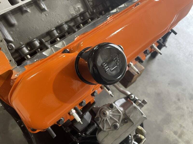 Got the thick black fiber style felpro gaskets for the valve covers and black ARP bolts. Also got a fuel pump push rod from Mancini racing. Steel stock one. The cam is a caster Comp Cam so the steel will work right. Got the Carter M6903 pump as well. Next I will be mounting the rocker arm and measuring the push rod length to order the all Comp cam parts.