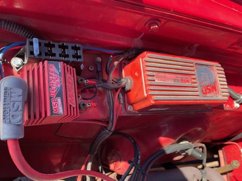 So here is what I have done. I went out and bought a multimeter, battery tester, battery charger, and battery jumper. I tested the battery and the voltage was about 12.4, so the battery seems good. The battery tester did show it was at about 75%, so I charged it to full capacity. I removed the terminals from the posts and cleaned and reattached. I checked the wires going to the alternator and the wires from the battery. I don't think it's the battery or the alternator, because when I try to crank there is no dimming of the lights or the interior. I even attached the battery jumper, but it still wouldn't crank. No sound, no nothing. So I am guessing it may be the starter or a relay or some other electrical issue along the ignition system. Below is a photo of the engine bay. You can see the MSD 6A control box and coil on the left. The distributor is an MSD Pro-Billet. On the right you can see the fuse box (was it originally on the firewall?), some relays and other stuff.