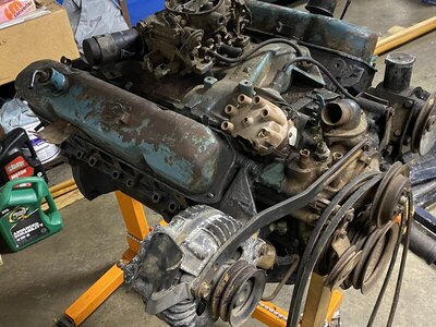 I picked up a complete ‘65 413 and 65 PB transmission (splined output) over 20 years ago. I’m not going to use it in foreseeable future so it is for sale. Engine price $500. It has standard bores. 2 cylinders have some rust showing but not noticeable to touch. The worst cylinder is #2 and is in pics. Cylinder #4 has some rust but is about half what #2 has. Just wanted to point this out. The engine is complete with brackets and pulleys but no exhaust manifolds. It has 516 heads. Block date is 5-29-64, casting #2468030. The guy I got it from said he took it out from a 65 Chrysler (I can’t remember what model).