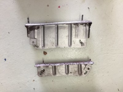 Selling an OEM, rare pr. of 1965 Coronet 500 bucket seats with trim pcs and floor mounting brackets. Someone attempted to spray dye the covers, botched the job. These would need to be recovered but the seat frames are rust free as are the seat adjusters which operate like they should, no damage. The chrome trim pcs have minor pitting and would need to be re-chromed or painted, driver quality now. The mounting floor brackets need cleaning up and have surface pitting, two studs need replaced and the very bottom area of brackets would need an area with a weld patch. These would fit a 1965 Satellite with the correct covers as well as other models if you just want Mopar seats.