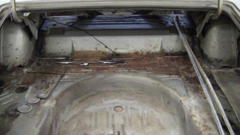 My new project is a car I saw 15 or so years ago. I went back and it was still there, it had been parked in 1978. I paid $200 for it and brought it home. This was $150 more than the roving crushers had offered so we were both happy. After inspecting the car it appears the floor, trunk and frame rails are near perfect with only one little hole where the gas pedal goes and a small hole in each wheel well in the trunk. It would be nice to find a couple fenders, but these can be repaired if need be. The rear quarters also can be fixed but a donor car is what I will be looking for. I think it will become a big block car with an auto trans. I am thinking about making it an R/T clone, but I'm not sure about that. I have to give credit to Daredevil, his car is what lead me to go back and rescue this one. Anyway here's the starting point.