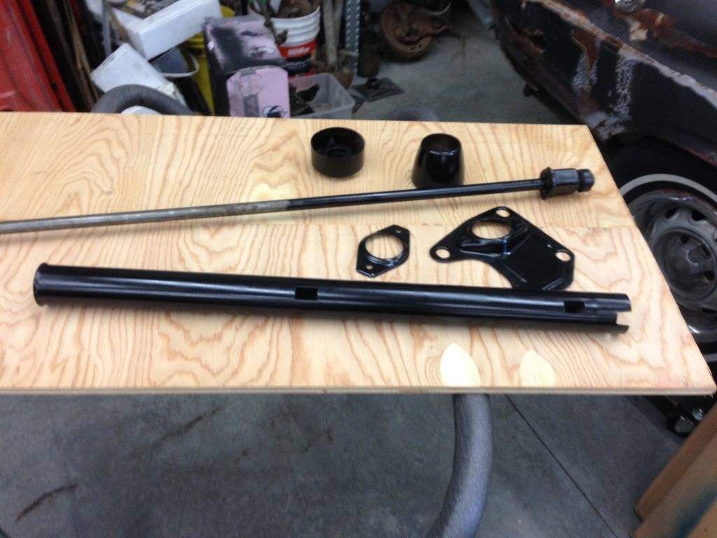 I cleaned up the engine bay wiring today and re-wrapped it. I had to do some repairs, but overall, not too bad. Then I blasted and painted the fender bolts. The hood hinges I blasted and primed long ago. They got some color today as well.