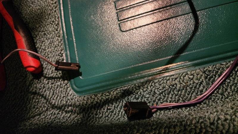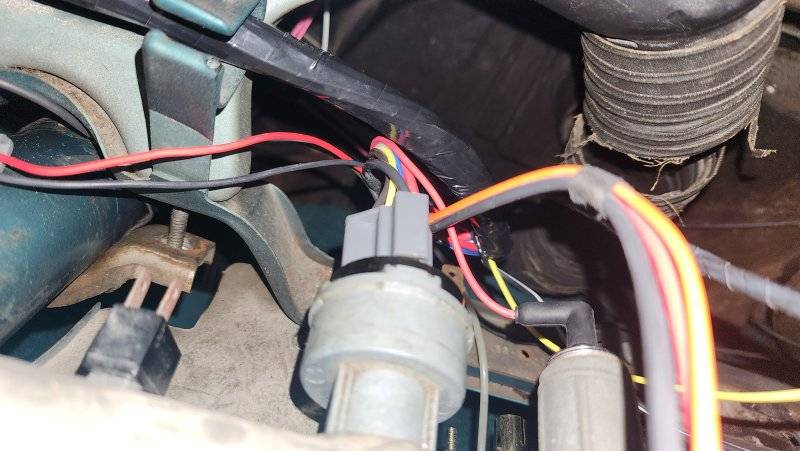 This is the purple cable and purple with stripe wire that starts at the connector behind the drivers side kick panel. I think I recall the two prong connector plugged into the two prongs on the steering column but I dont have any idea where the single prong went.