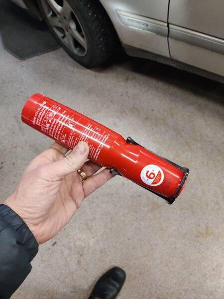 Best thing is it's not corrosive or harmful as powder extinguishers are.Gotta have one! I carry a ABC on the floor behind the driver's seat, the kinda big one, like they have in lots of buildings. (It was free)