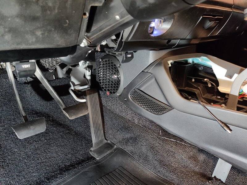Center console and speaker box hooked up and in for (hopefully) the last time.