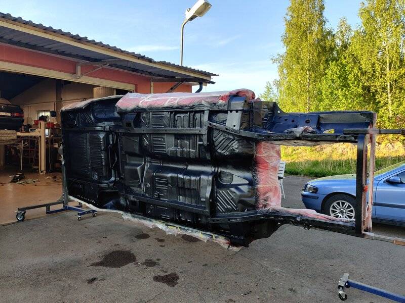 Couldn't stop myself from removing all masking! Very satisfying seeing it again. Now it's actually time for assembly! I'll start with plumbing, brake and fuel lines while I can work on it with the car in the rotisserie.