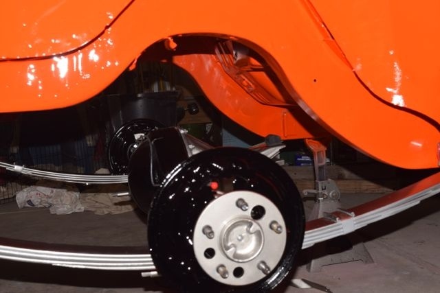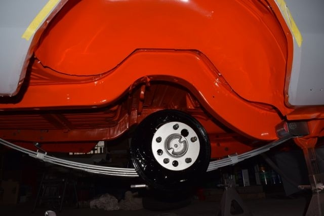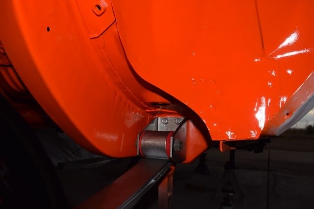 It was a http://www.southernpolyurethanes.com kind of day. First I sprayed the underbody with SPI Orange. Laying on your back spraying paint upside down sucks. I got a good even finish where it matters in the wheel wells and frame that can be seen through the wheel opening.