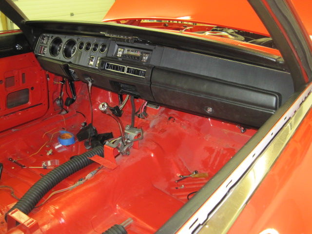 I was able to install the compressor with the help of the 69 system I have and the few 68 parts I had. I had a few issues getting the compressor with the cast brace on and lined up with the intake manifold but eventially got it figured out and am happy to finally see it on the car. One step closer to firing it up. I have some tightening up to do on some odds and ends and sorting out a few detail items and I am pretty much done under the hood. What a nice feeling of accomplishment. I have been working on the dash and wiring and mocked up the cluster and it is looking good. I just need to figure a few routing items and I will be in business. My hope is to get this thig started in two weeks. I am off on Tuesday and will spend the day working on those items under the dash and reinstalling the column. Here are some photos of the latest.