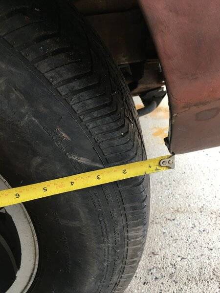 Tire size is 235/70R15. Looking again at the car it looks like the passenger fender is not a 68. On the inside of the passenger fender I see a rectangle not circular hole. This hole is covered by filler on the exterior. Is there a difference in wheel well shape/positioning between 68 and 69?