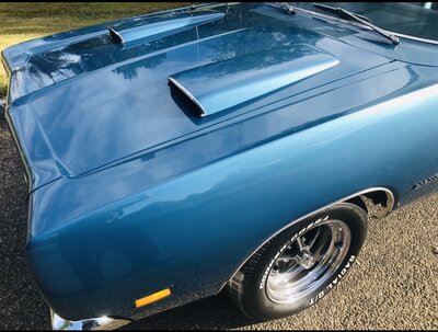 69 Coronet 500 convertible original hood with original scoops that are not original to original hood. You don’t need a N96 hood. You only need an original hood that you can add scoops to if you wish. The bottom of the original hood has the same access holes as the N96 hoods have for fastening them from underneath. Correct statement above. The 69 Coronet 500 convertible did not originally come with scoops. But, it sure in the hell looks better. Than without. I like originality to a very large degree. Having said that, in a couple circumstances. Originality is not necessarily better in a couple of circumstances. Most restored Coronet 500’s have scoops installed. Understandably so, in my opinion.