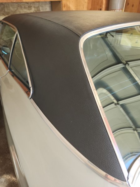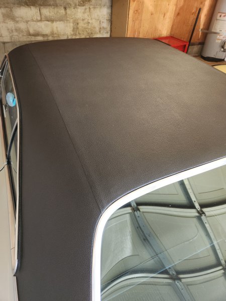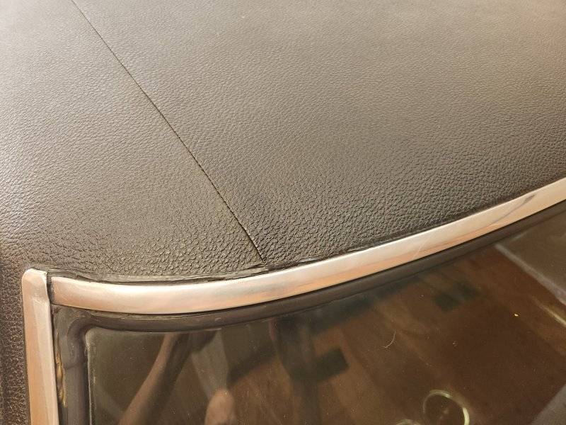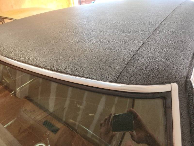 Discussed the vinyl top. It does seem to be original. In our conversation he also disclosed that "black goo" has been applied at the top of the windshield to stop a leak. That took the wind out of my sails. Then he also said the rear seat will need to be reupholstered as it's cracked and a repair is not holding up. More pictures sent.