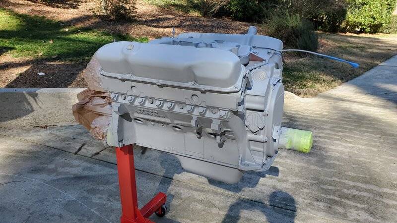 There were a few problem areas. First, I pre-painted more than I needed too. I wanted to paint the valley pan and the bottom of the intake (for rust prevention), but I should not have pre-painted so far out and the hold down bars. Second, I taped off to much around the exhaust manifold bolts. I later saw people taping closer to the bolt holes. I will probably have to touch up some gray spots. And third, the dip stick tube is a pain. They are way too tight and I broke the first and scratched the second. With the second I even grinded the end and should have done more. I still couldn't get it in the last 1/4 inch.