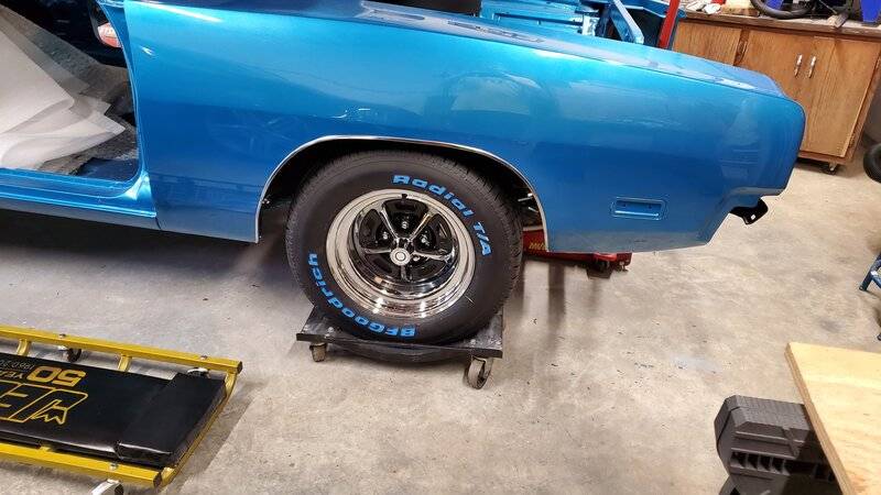We also have wheels and tires. The rear wheels just barely hit the disc brake calipers, so I needed to run 1/4" wheel spacers. This meant I needed longer wheel studs so I switch last last wheel from left and threads to right to match the others. The front was changed with the disc brake swap. So far I am liking the 245's in the front and 275's in the rear.