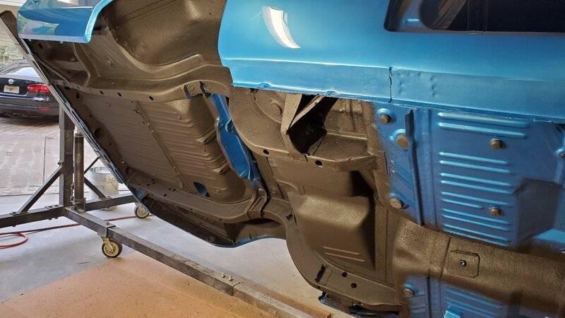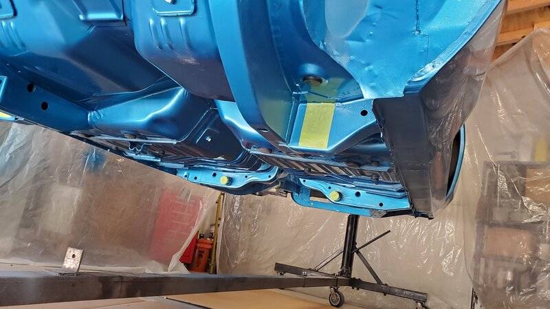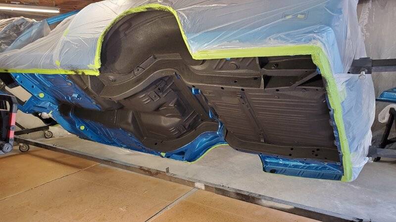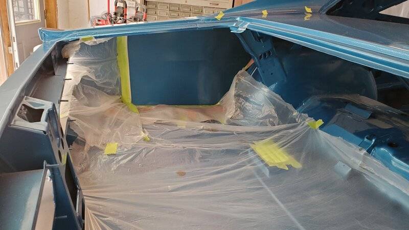 The entire trunk was painted, then taped off weeks/months later. The under body coating was spayed back to just before the marker light and as far forward as I could get. The picture where the the trunk is taped off is just before the under body coating was sprayed.