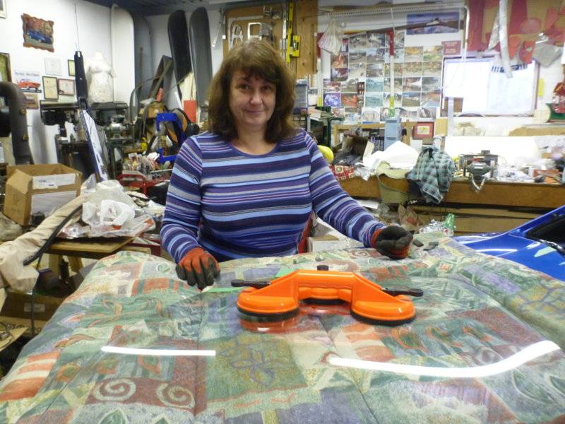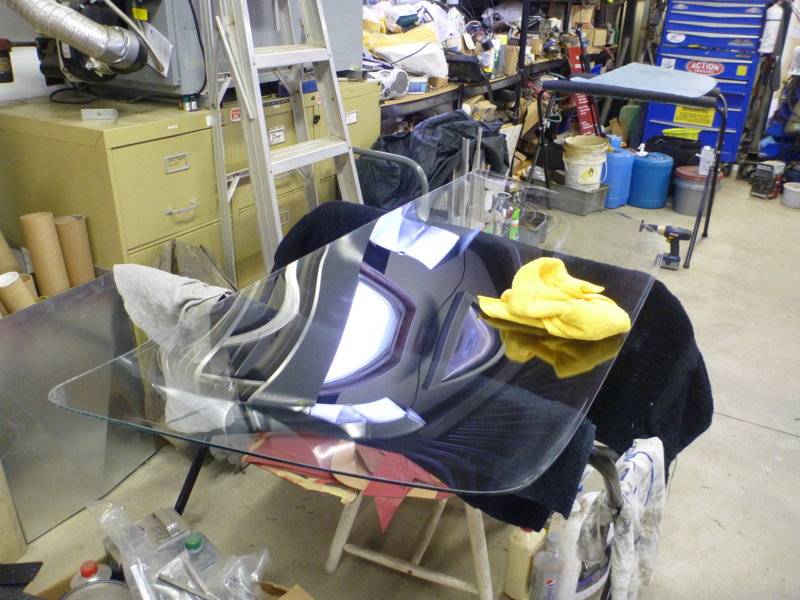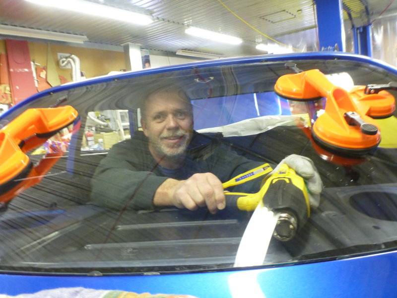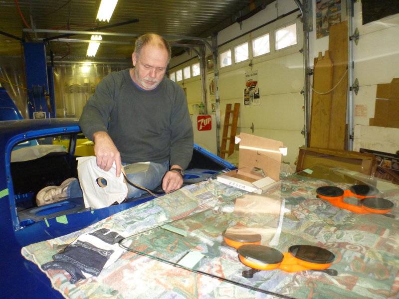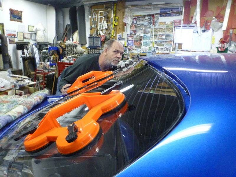 Best looking of the two back glass' in place and taped for location. Tomorrow my lovely assistant gets to help lift it out and then back in onto butyl.