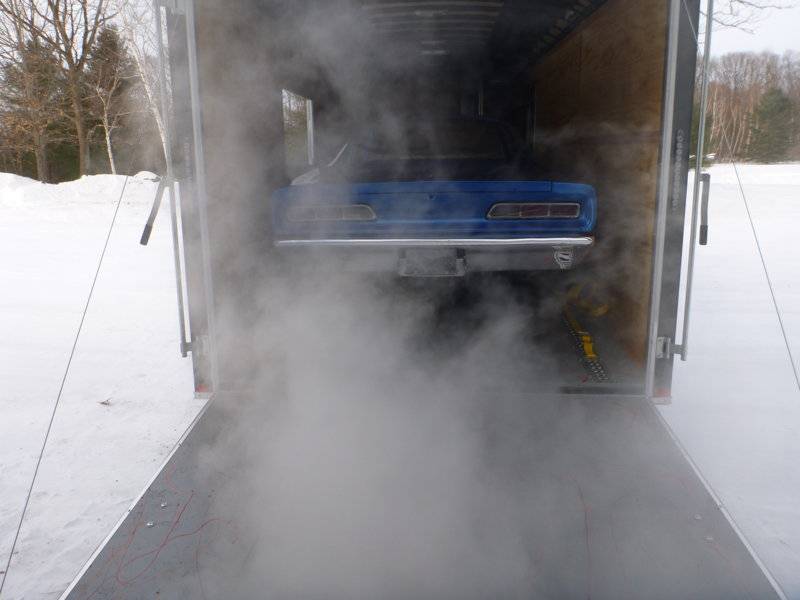 Lots of White "Smoke" this morning. -22/23 C outside. Still trying to find my finger tips after strapping her down.