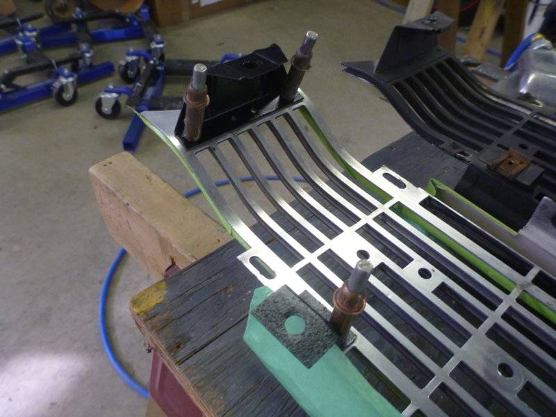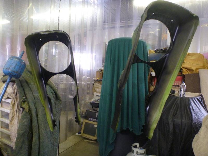 Headlight eyebrows taped off on the polished parts and etch primered.