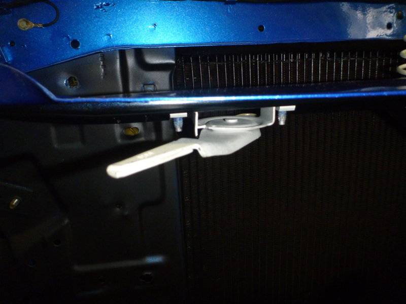 Hood release latch. Believe the bolts should be black phosphate, but I only have two blue ones left. Will correct later, but I want to get this latch on the car.