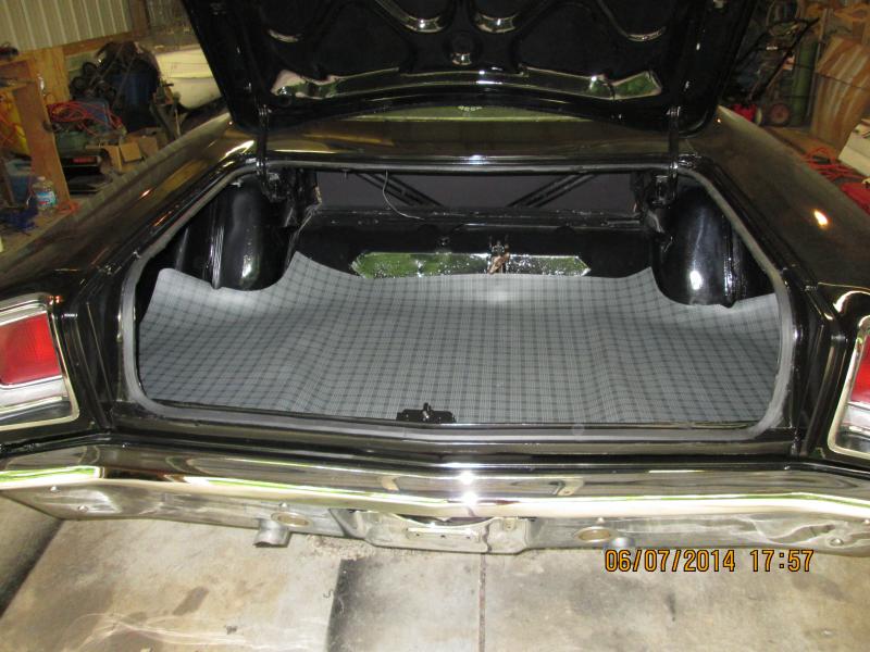 Remaining: side trim pieces to be mounted on the doors..I ordered some new real trim clips that mount with a nut inside the doors..before installing the door trim...The plastic clips that came with the trim set is absolute junk! Get the rest of the trim on the car and then the bumpers. Then, new rubber brake lines, and good to go..