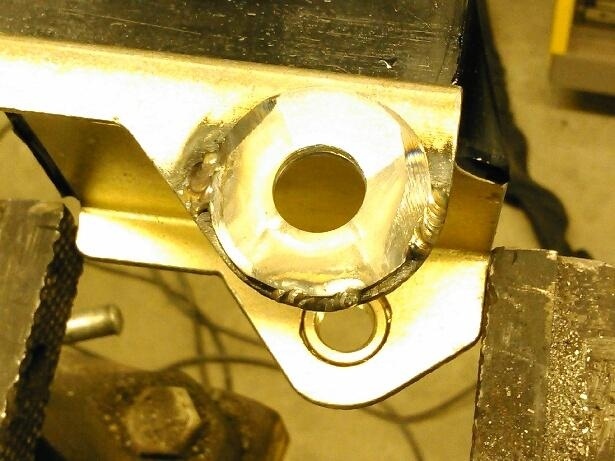 Tig welded a washer on the motor mount to get rid of the slop & strengthen the ear a bit.