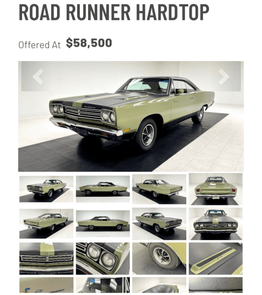 I was at a local 1950s Diner car show last night and a out of town guy attending the show struck up a conversation with me. We got onto the subject of looking for a 1969 Coronet in F3, and he told me about this car. He lives near the dealer and said he thought it was worth near the asking price. He admitted he never heard it run, but said it was worth considering.