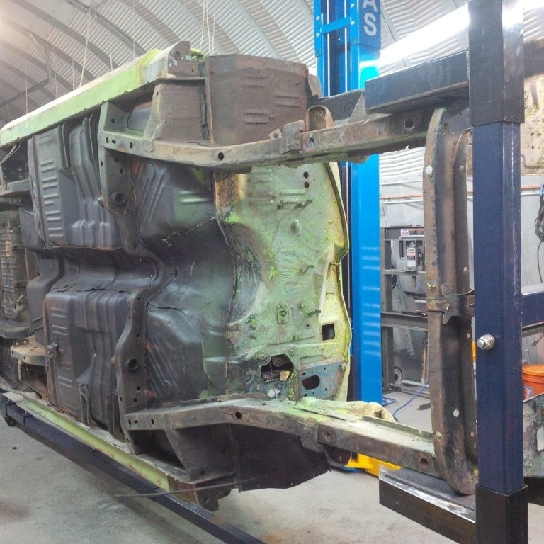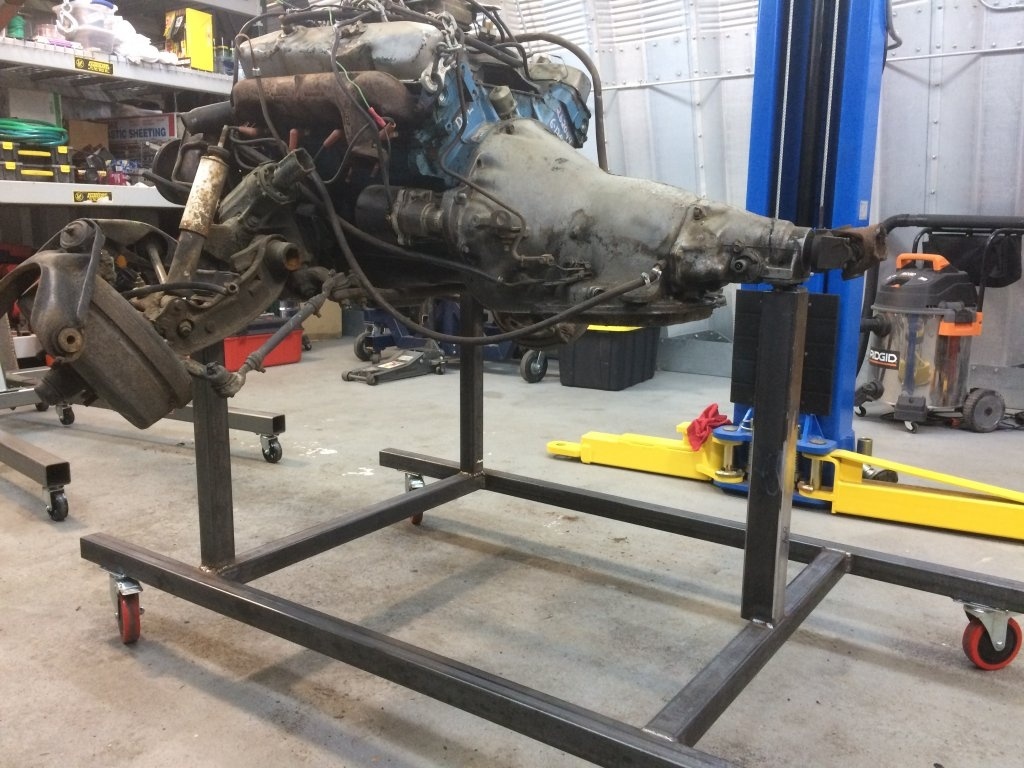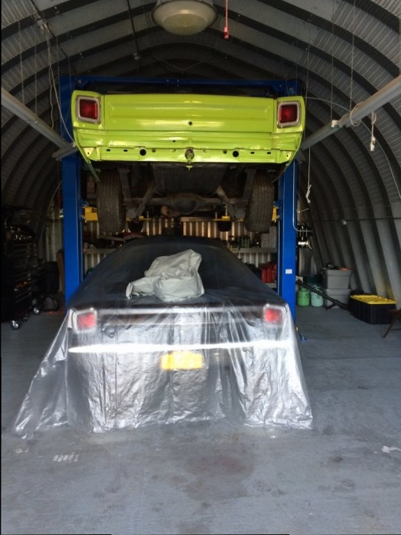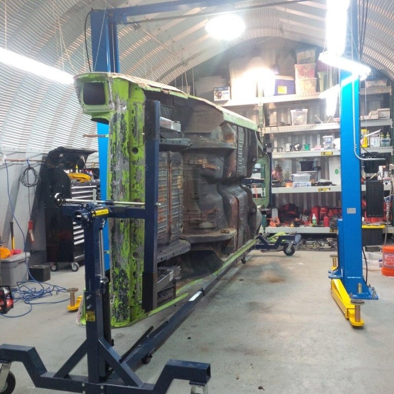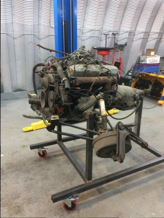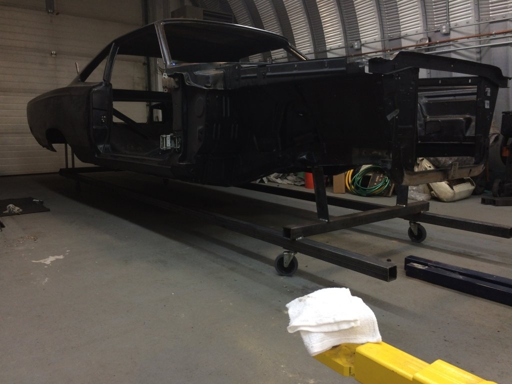 I built my own trolley for the motor and transmission for me to overhaul things and another trolley for the car to be rolled around on for paint. The rotisserie in the pictures I bought from a guy who never used it and it was in the boxes. This is my first true complete disassembly and rebuild and am devoting the time and energy to make Mopar fans proud.