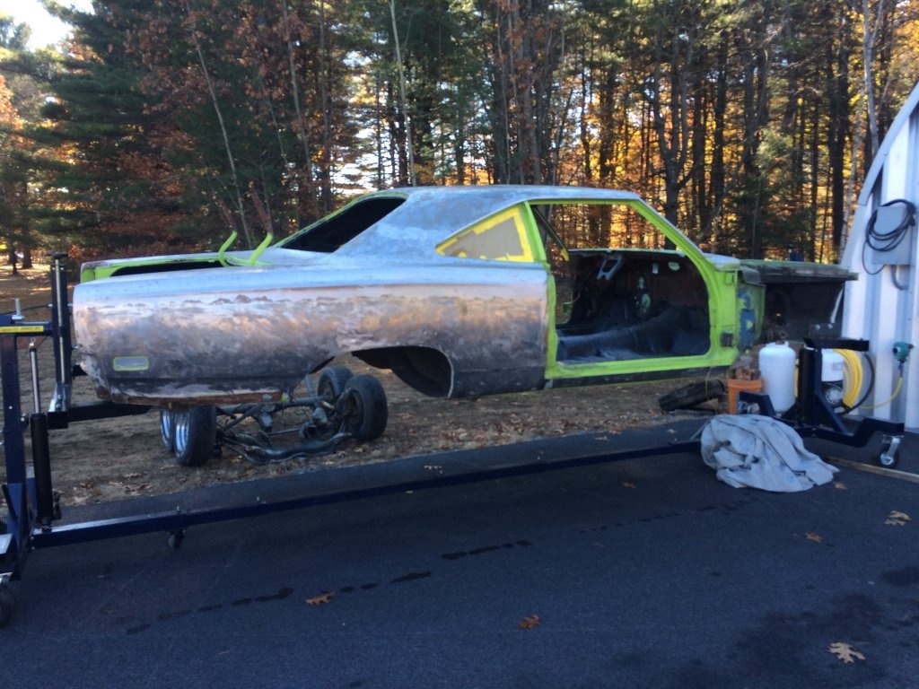 I finally decided to make the time to restore one of my other 1969 Roadrunners. After much deliberation, I decided to take it all the way down and give it a rotisserie restoring like all these rides deserve.