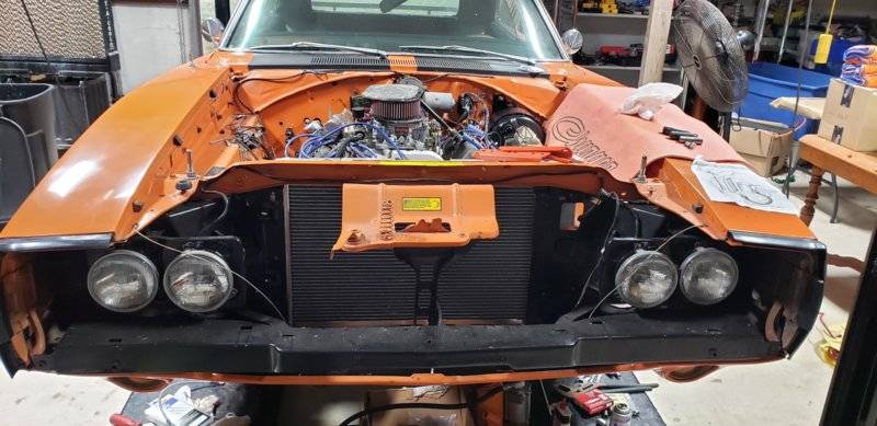 Be Cool radiator, dual cooling fans and shroud ( have originals also). Classic Auto Air Unit (installation not complete yet).