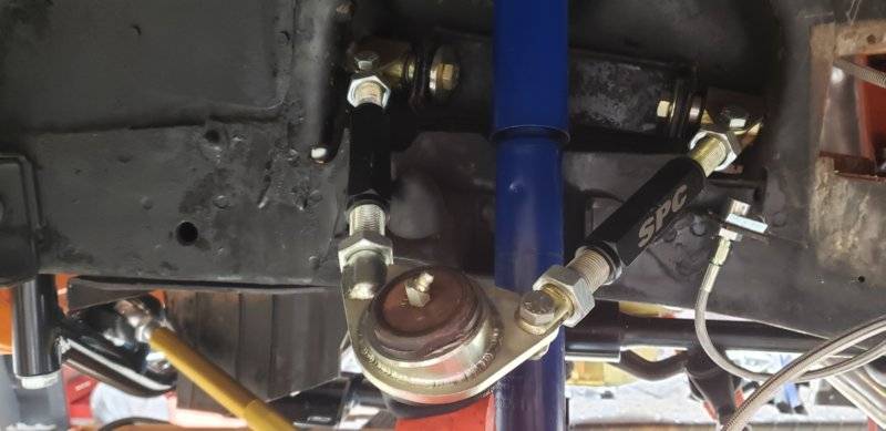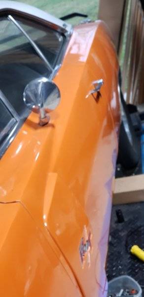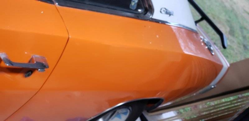 Body is rust free, Go Mango paint, probably 25 years old. Still in very good shape. White bumble bee stripe and go wing added. New front bumper and bumperette strips. New grill, headlight doors, and emblems (not yet installed). New QA1 tubular k member, strut bars, and lower control arms. New dual adjustable tubular upper control arms. New PST poly front end kit. Oversized tie rod ends and adjusters. New 1.03" torsion bars.