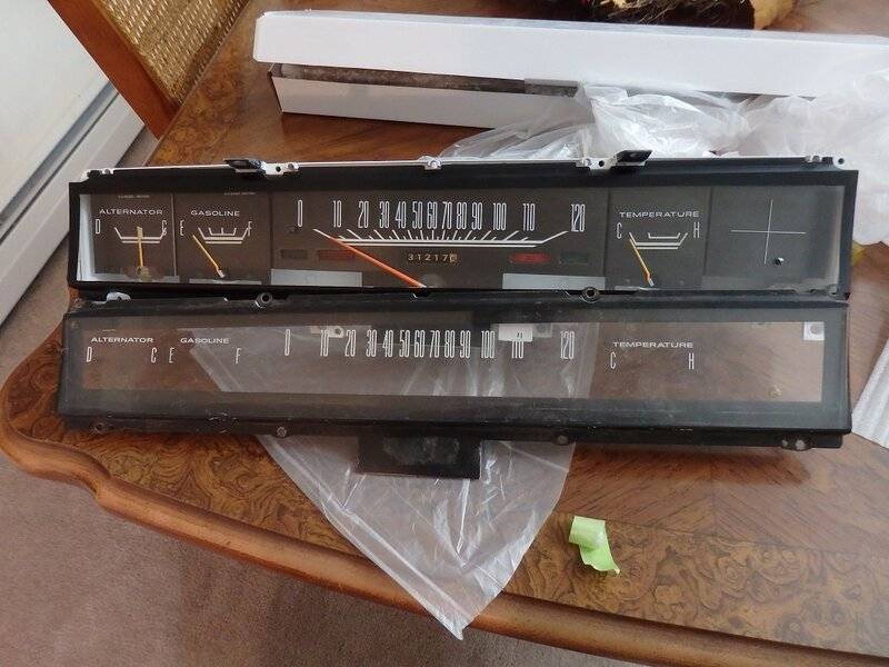 I was lucky that the instrument faces were nice. The inside, I just cleaned up and painted with flat white paint. the clear bezel with the lettering on it it reproduced. It's really nice, but the hole for the clock knob is a little larger then the original. in my case no clock. so I used the original plug. I had to add a little glue to keep it from rattling around.Thank you. What all was involved with doing it? How did you do the speedo and it's lettering?