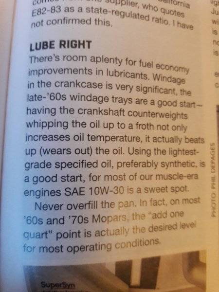 He's getting there. If you truly want the best mileage , run 0- 10 ultra synthetic and about 2 1/2 qts including the filter.