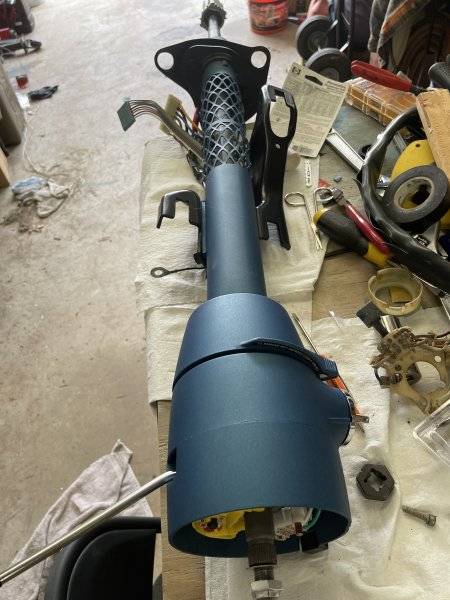 Ok. Now I way to look at my column more closely. I am missing pieces at the bottom. That white bearing spacer looking piece. And that wire retainer that I assume keeps the roll pin from just falling out.Finally got the steering column reassembled today. Still need to refinish the steering wheel, but I’ll take the progress!