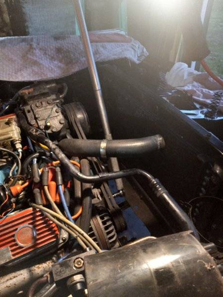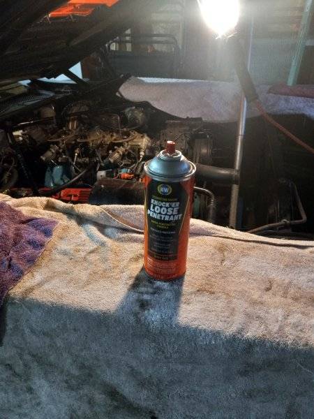 Anyway, that is the background of the car, it is in nice shape for sure, but it did sit outside for about two years and it shows. The very first thing I will be doing is an engine soak as seeing how it sat for well over twenty years, the engine is stuck! The other day I did manage to get the plugs out, and then last night I filled each cylinder with Knock'er loose (s). We'll see how it goes! I pulled the radiator out as I'll have it pressure tested before re-install.