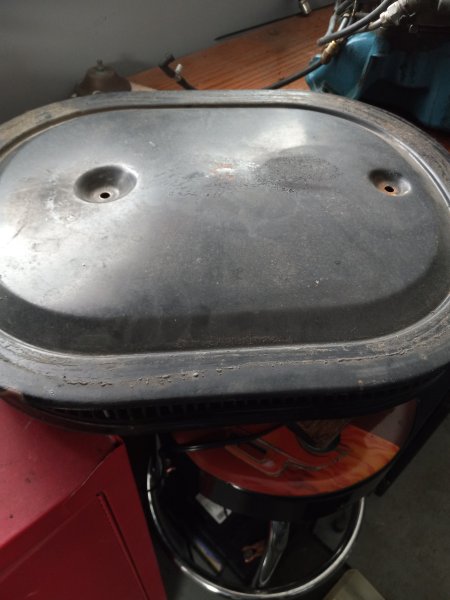 So I ended up doing a bit of work on the car yesterday. I wanted to get a handle on the gas tank and try to understand if it was in good shape. I took my electric pump and hooked it up to the hose coming to the gas pump. Let her buck and it pumped about ten gallons of pretty nasty gas out of the tank before it went dry. This is good news though. There wasn't any sign of rust and no particles present so I believe the tank is good to go. I also took a good look at the Six Pack Air cleaner and was in for a pretty big disappointment. Check out the pictures. I mean on one hand it is pretty neat for a redneck fix or trying to be cheap in getting a base for the setup, but wow?!?! Why, what the heck happened to the real base? How the hell did I not see this until now? LOL! Anyone have a base??Thought I should start a thread here on my 1972 Charger SE. The car has an interesting story that I thought some folks might appreciate. The car was a barn find car I guess, although it was stored inside for most of its life. The story starts a few months back when my cousin gets a call out of the blue from the son of an old boss he worked for many years ago. The son asked my cousin if he could store a few cars over at his place as his dads girl friend had someone push the cars outside and was starting to sell parts off of the cars. A few days go by and the cars arrived. A Testarossa, Pantera, ZR1 Vette, 32 Ford Vicki, and the Charger. I had flown out to my cousins place to take in a few car events including the Mecum auction. This was back in August. I took one look at the car and bought it.