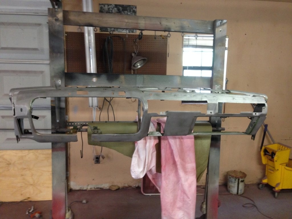 Mean while I have cleaned and primed the dash, rear valance and front upper grill support. In the pics you can see the dash after media stripping and after I had cleaned it then after I painted it with epoxy primer.
