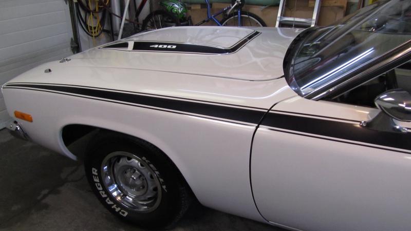 The car was completely restored by the previous owner in 2000. The interior was part of the restoration all new seats and headliner all matching the stock colors and patterns. Its got 82ooo original miles , its all numbers matching. Was appraised it 2011 for $17800.00cdn. I think that I would like to change out the wheels for some Torq Thrust wheels, and maybe putting the large Plymouth logo on the rear quarters any thoughts? Also the rear needs to be brought up a bit, any idea whats the best way to go about that? Thanks Gord.